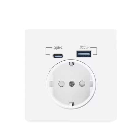 Enchufe de Corriente Europeo de Plástico con Puerto de Carga USB Tipo-C de 2.1A y 16A, IP21, Panel de PC de 86mm, Toma de Corriente de Pared