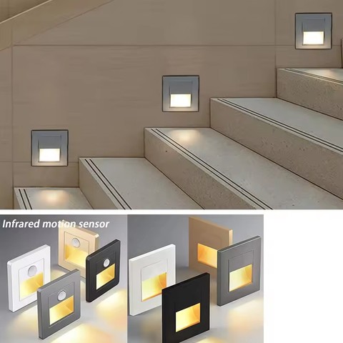Sensor Detector de movimiento PIR, luz Led para escalera, lámpara de inducción humana infrarroja, escalones empotrados, escalera, dormitorio, luz nocturna