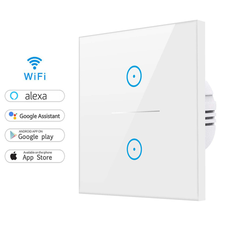 Reino Unido/UE 2 Gang Smart Wireless Wifi Interruptor de luz LED/Smart Wifi Interruptor de pared
